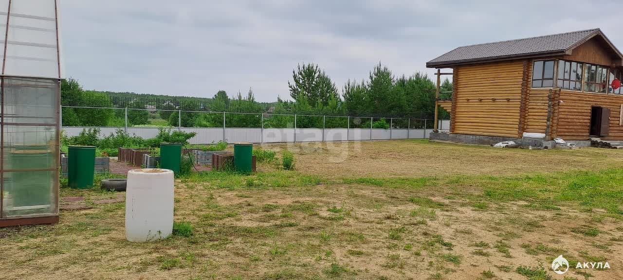На участке дом примерно 300м2(недострой). Второй этаж благоустроен , на участке баня, теплица, грядки из дерева( высокие) , есть скважина, септик.