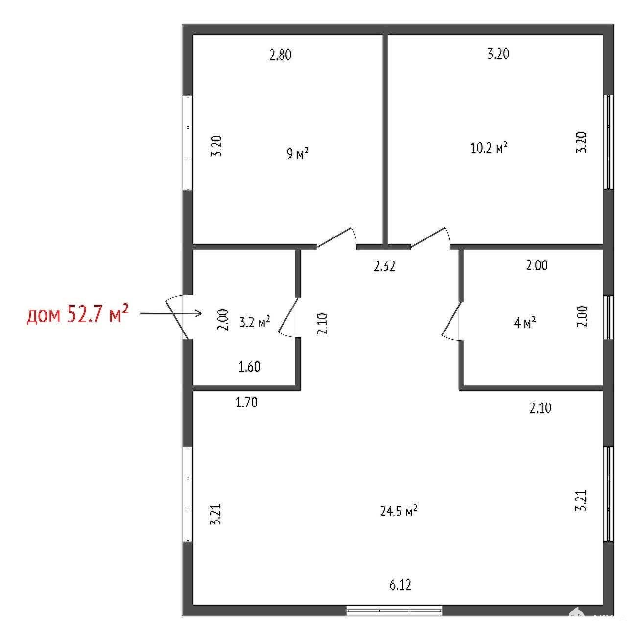 ОДНО этажный дом постройки 2023 года, отделка "под ключ", площадь 52, 7 кв.м., 2 комнаты 9.0, 10.2 кв.м., кухня гостиная 24, 5 кв.м, санузел-бойлерная 4, 0 кв.м.